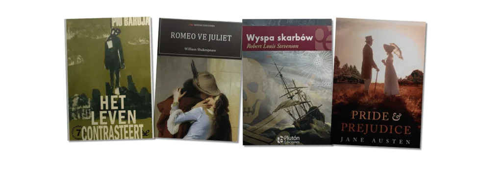 Cualquier libro popular que te puedas imaginar lo podrás leer en formato bilingüe en cualquiera de nuestros idiomas ¡aunque no exista en ese idioma! Nosotros te lo ponemos en bandeja y si no existe en ese idioma, hacemos la traducción automática. ¿Quieres leer las memorias del cocinero de la princesa Letizia en holandés? ¡Con nosotros puedes!
